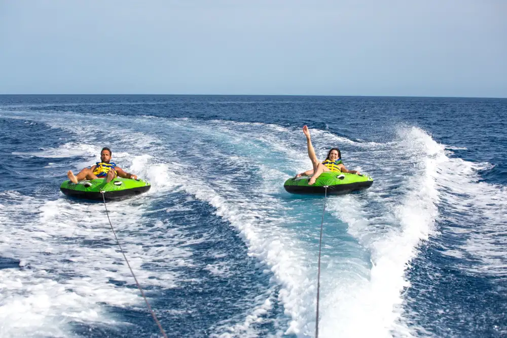 Fastest inflatables to enjoy this full of adrenaline experience. Rings up to 2 people. Hold tight you will get wet!